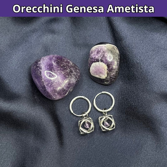Orecchini Ciondolo Genesa in acciaio inossidabile con pietra naturale Ametista