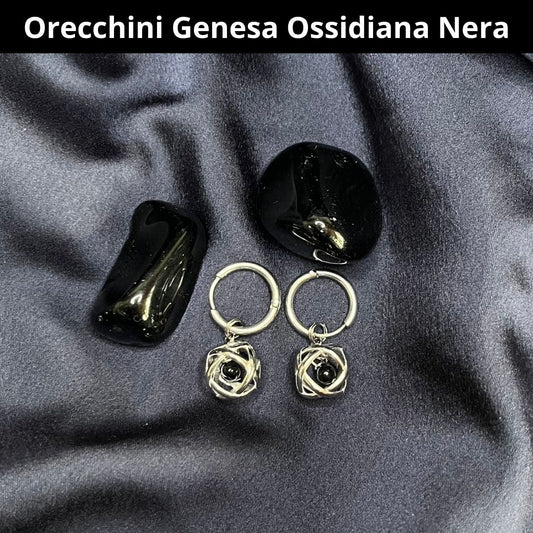 Orecchini Ciondolo Genesa in acciaio inossidabile con pietra naturale Ossidiana Nera